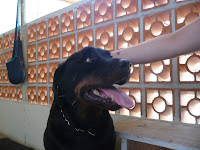Esta é a Laiza, uma Rottweiller mansinha, mansinha e muito comportada, ela só tem tamanho.