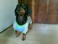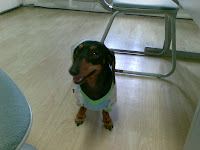 A Mel é uma doce cachorrinha, adora um colo. Adora tanto, que não admite fazer as sessões de acupuntura na mesa! Ela só deixa fazer se eu pegar e colocá-la no meu colo. É uma danada.