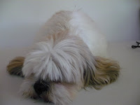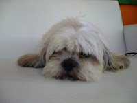 Este tufinho de pêlos é o Nicolas, um lhasinha muuuuito fofo, querido e danado. Ele está todo comportado e sonolento nas fotos, mas se vocês vissem até eu conseguir colocar essas agulhas… é 10 a zero pra ele! É que ele já conhece direitinho os meus movimentos, então ele vira de barriguinha pra cima quando preciso colocar as agulhas nas costas, encolhe as patinhas quando quero pegá-las… e por aí vai.