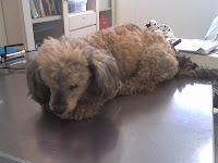 Quando vi o Toquinho pela primeira vez, ele estava deitado de lado, com os 4 membros paralisados, o pescoço bastante tenso e urinando na caminha por não conseguir se levantar.